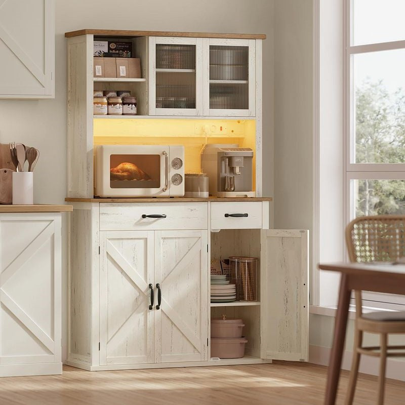 VASAGLE Sideboard mit Beleuchtung und Ladestation im Landhausstil