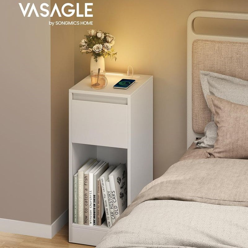 VASAGLE Nachttisch mit LED Beleuchtung USB Anschlüssen und Schublade