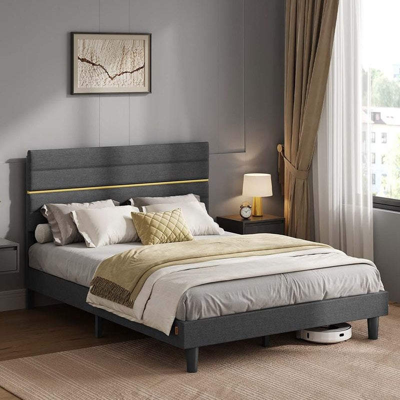 VASAGLE Modernes Doppelbettgestell mit gepolstertem Kopfteil für Schlafzimmer