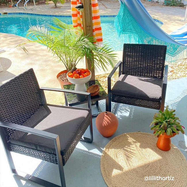 Manche Tage sind anstrengender als andere. Wenn sich das Leben zu anstrengend anfühlt, ist es hilfreich, einen ruhigen Ort für sich selbst zu haben, um sich zu erholen und einen Zen-Zustand zu erreichen. Suchen Sie sich also ein ruhiges Plätzchen in der Sonne und verwandeln es in den stilvollen Zufluchtsort (warum nicht mit einem Outdoor Teppich?), den Sie verdienen.