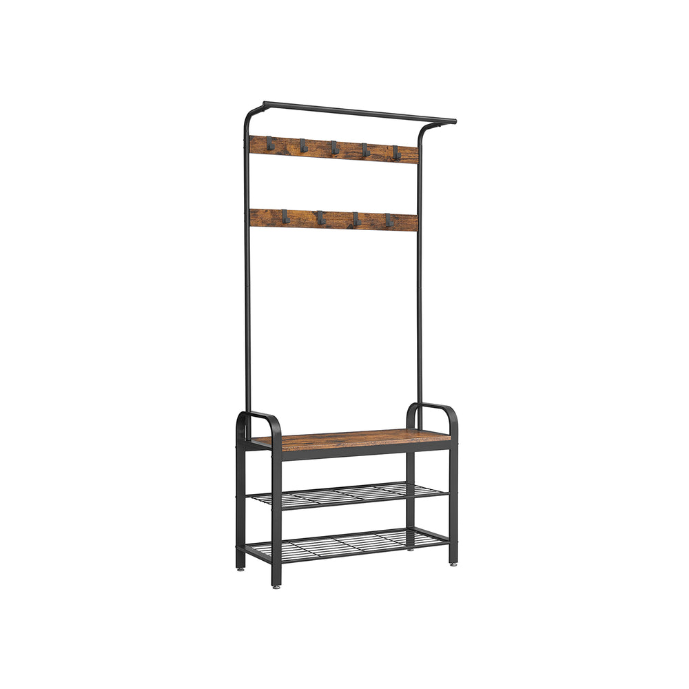 VASAGLE Garderobenständer mit Sitzfläche und 9 abnehmbaren Haken