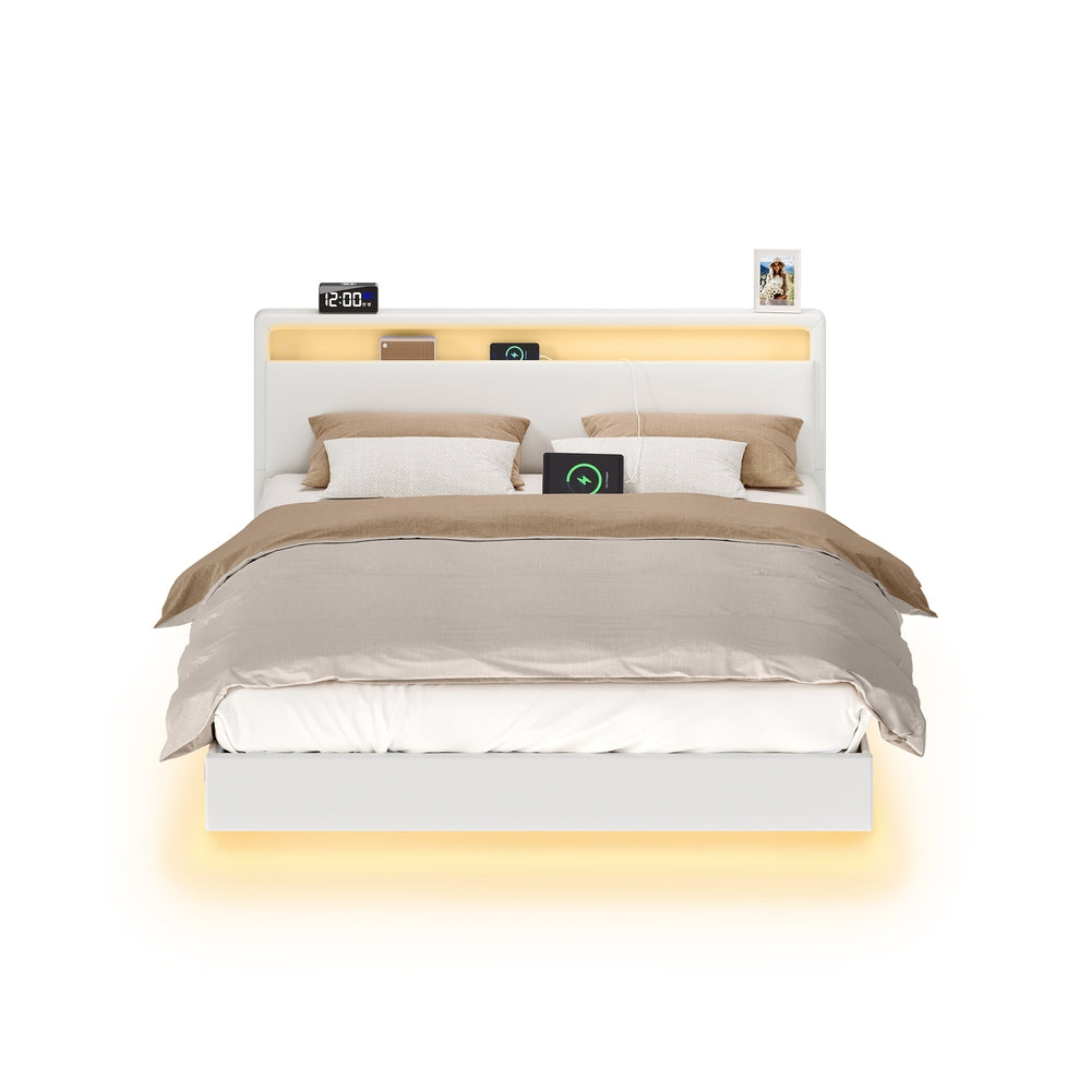 VASAGLE Bettgestell mit LED-Beleuchtung und Ladestation