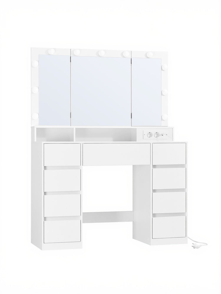 Schminktisch mit LED-Beleuchtung, Frisiertisch mit Klappspiegel, Schubladen