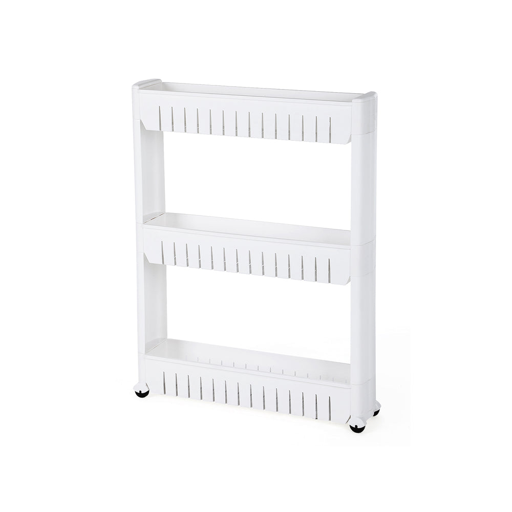 Schmales Standregal auf Rollen mit 3 Fächern