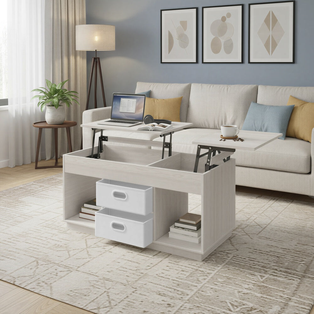 Couchtisch mit 2 Schubladen und Fächern schneeweiß