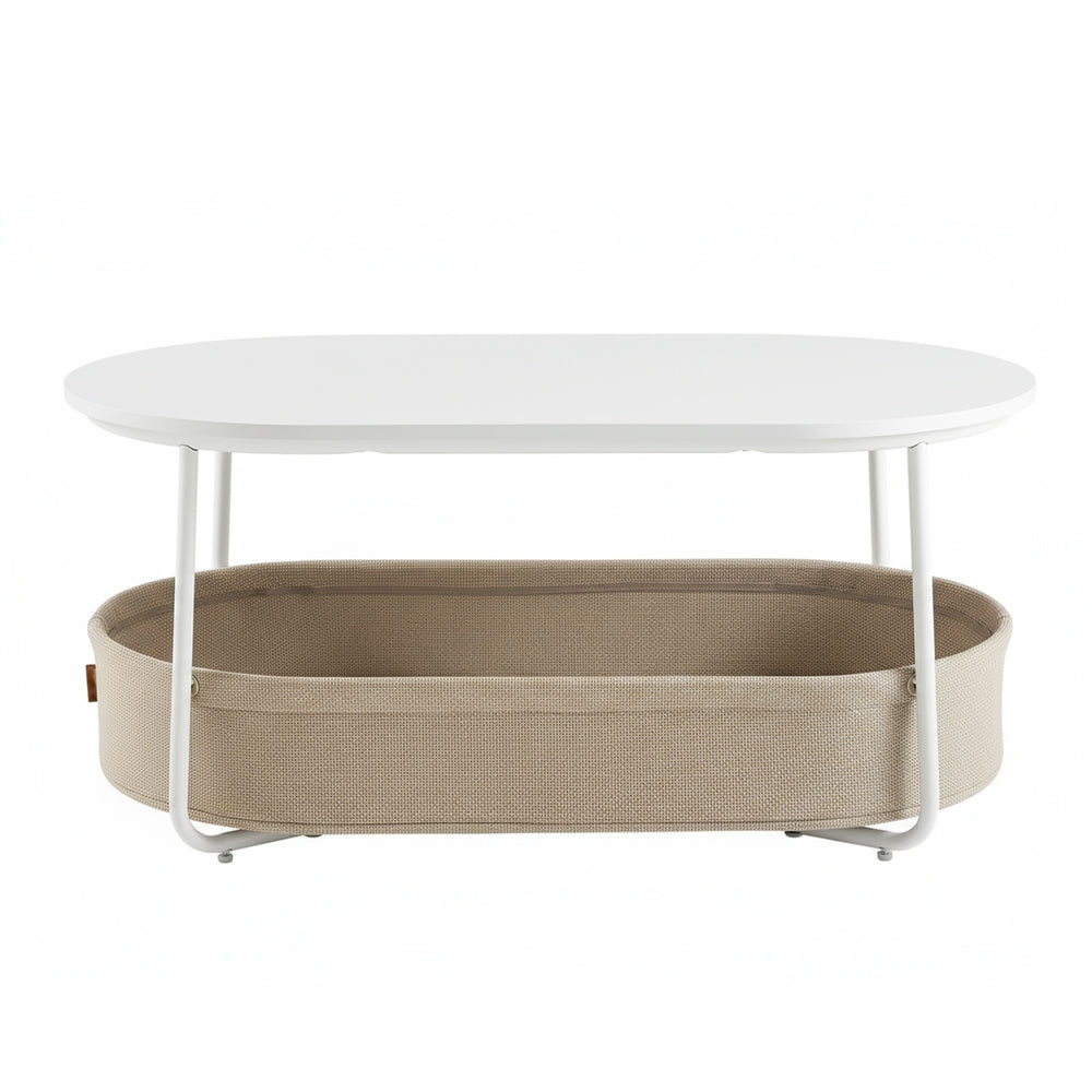 Couchtisch rund, Beistelltisch mit Stauraum, Wohnzimmertisch mit Korb aus Stoff