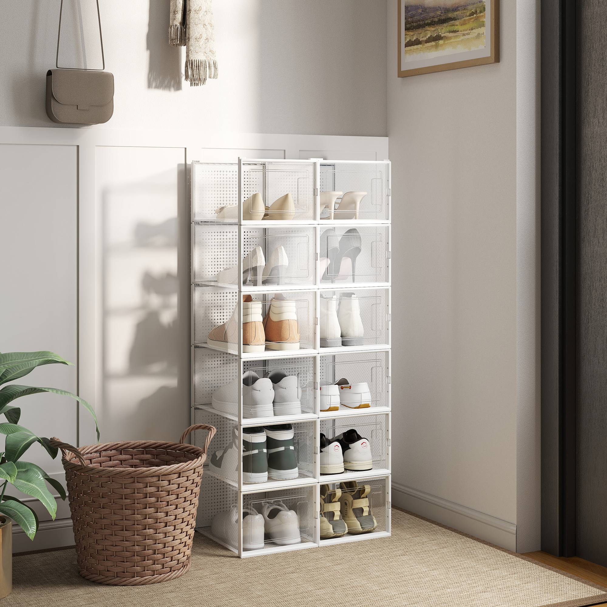 Schuhboxen 12er Set, mit Deckel, Schuh-Organizer stapelbar