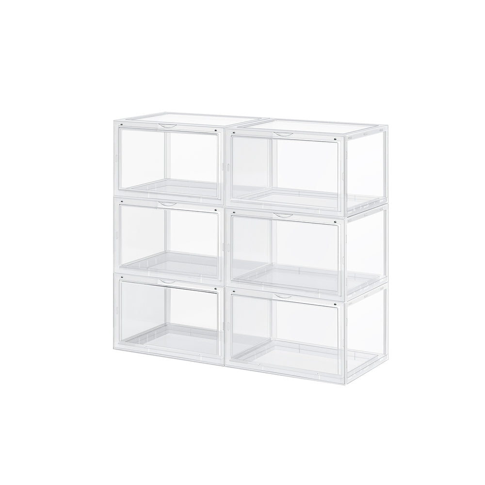 Schuhboxen 6er Set stapelbar, Schuh-Organizer mit Tür, Kunststoffboxen