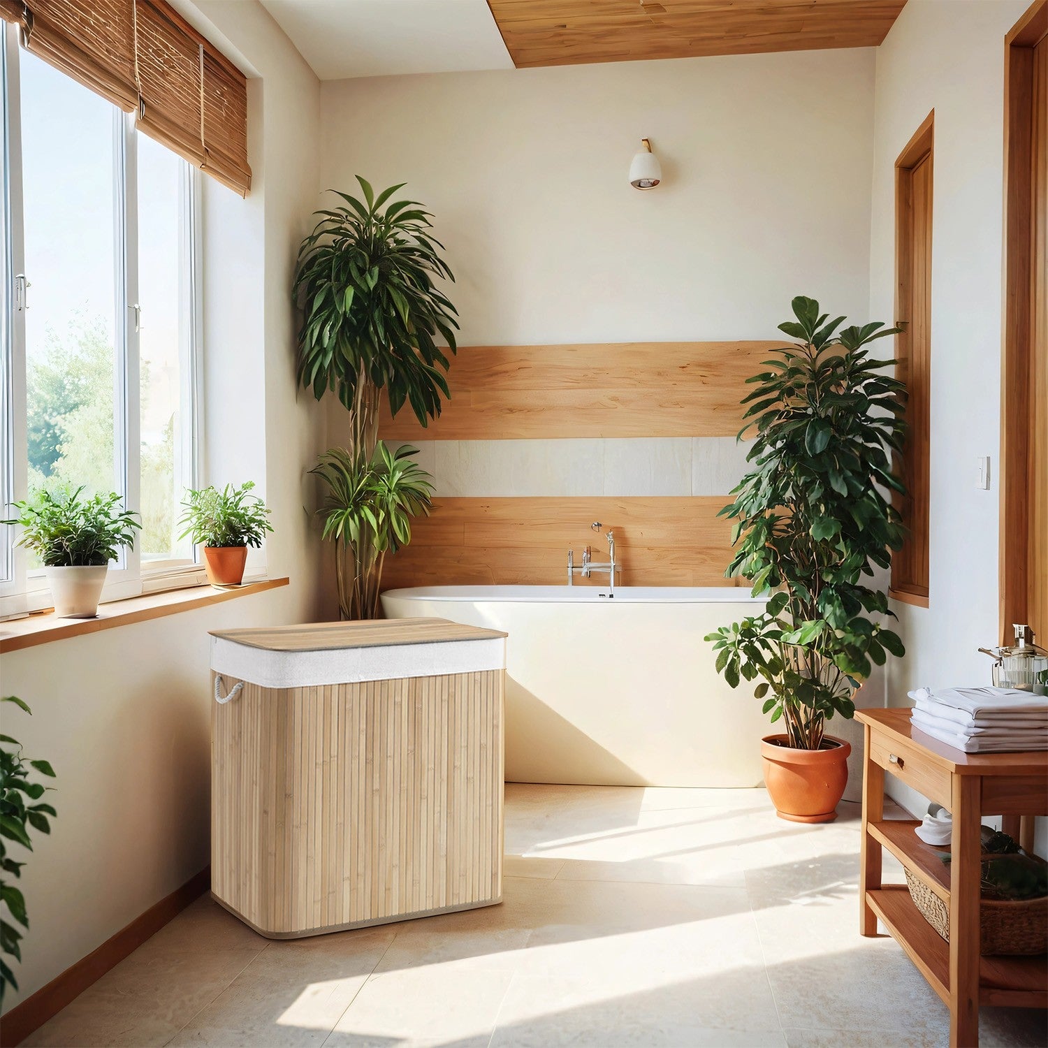 SONGMICS Wäschekorb aus Bambus mit 3 Fächern