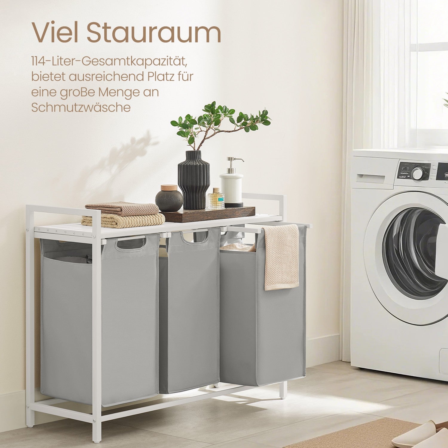 VASAGLE Wäschekorb 3 Fächer, Wäschesammler mit Ablage, Wäschebox