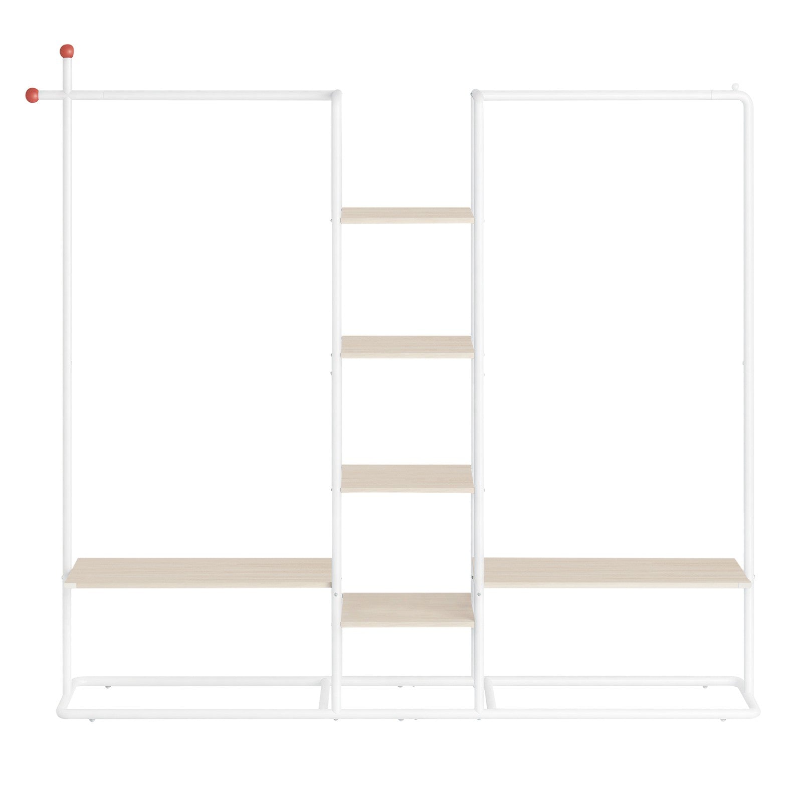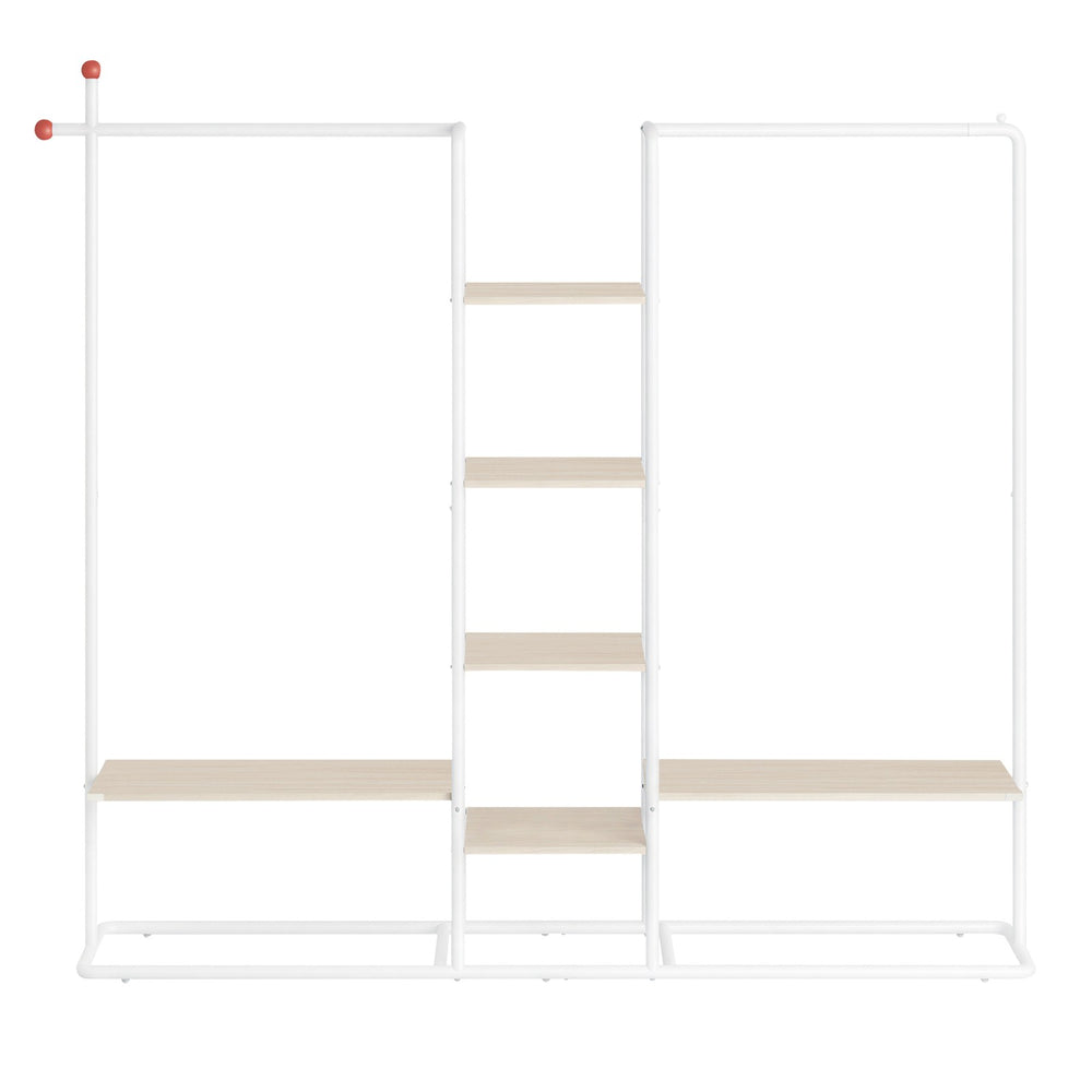 Garderobe, offener Kleiderständer mit 6 Ablagen und 2 Kleiderstangen, Haken