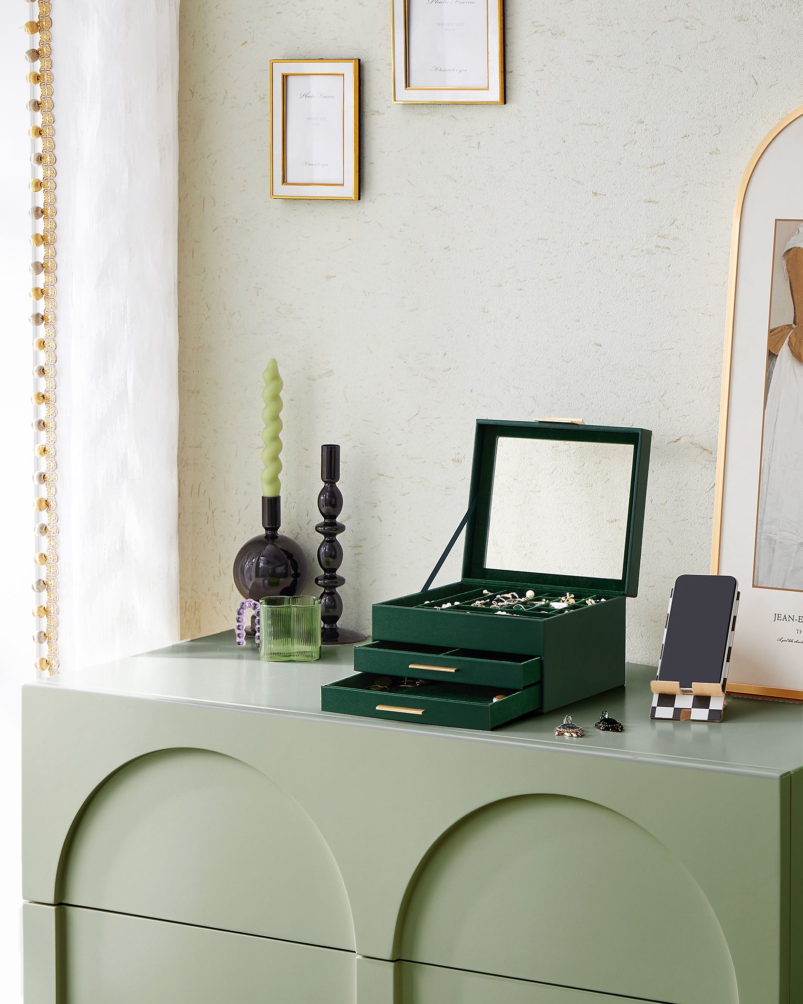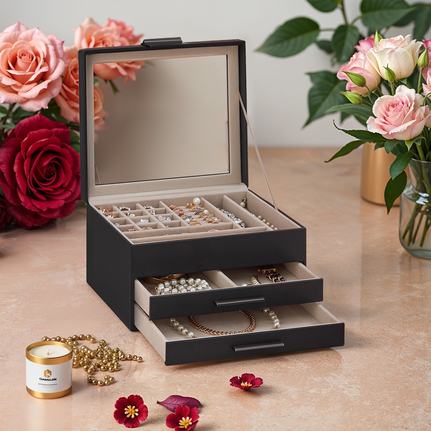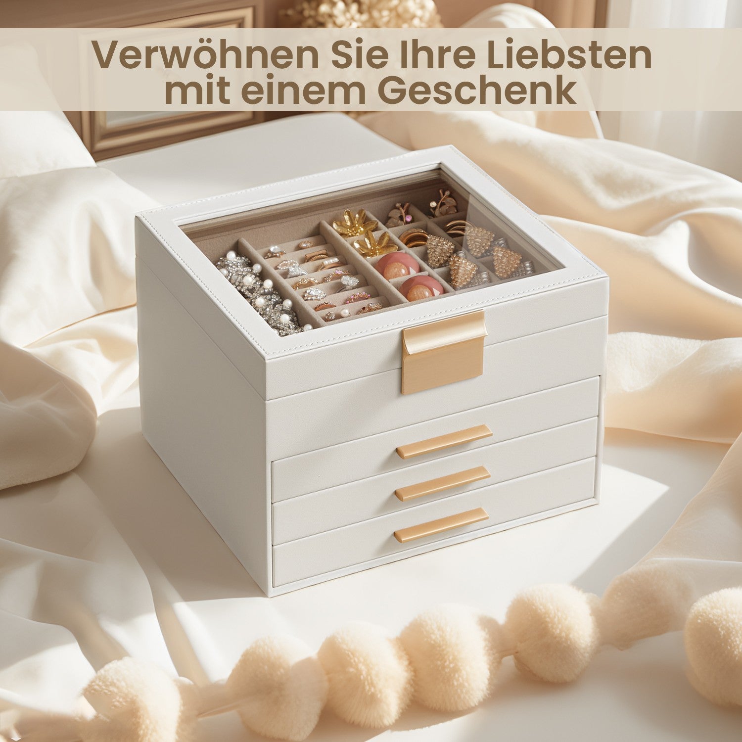 Schmuckkästchen, Schmuckkasten 3 Ebenen, Schmuckbox mit Glasdeckel