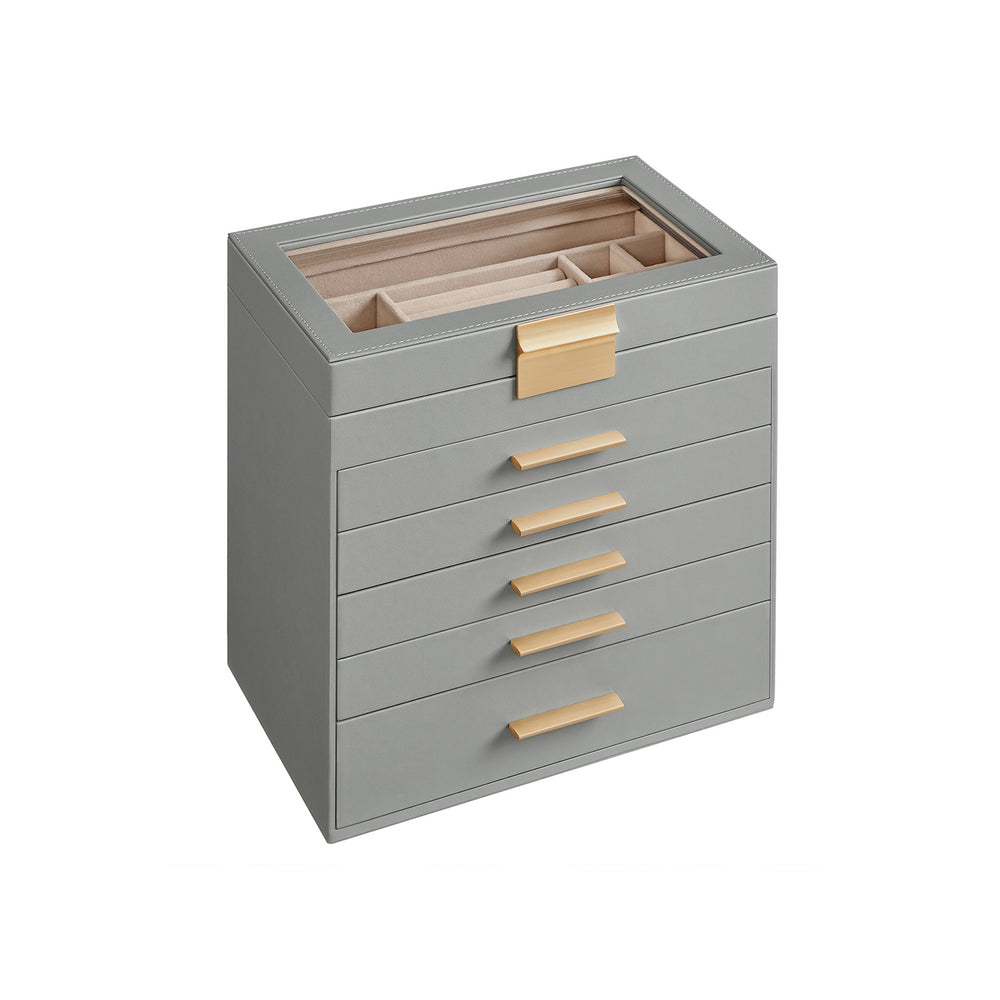 Schmuckkästchen mit 6 Ebenen modern taubengrau-golden