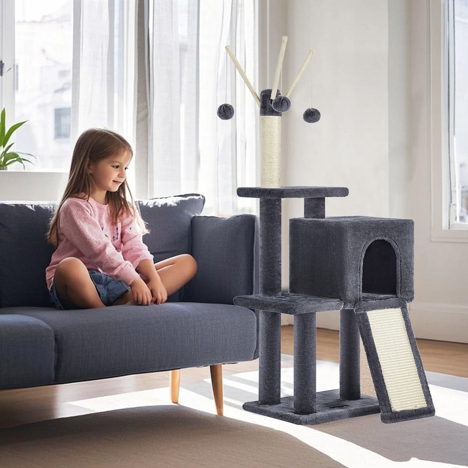 Kratzbaum, Katzenbaum mit mehreren Ebenen, Katzenkratzbaum mit Katzenhöhle