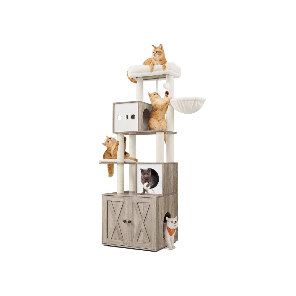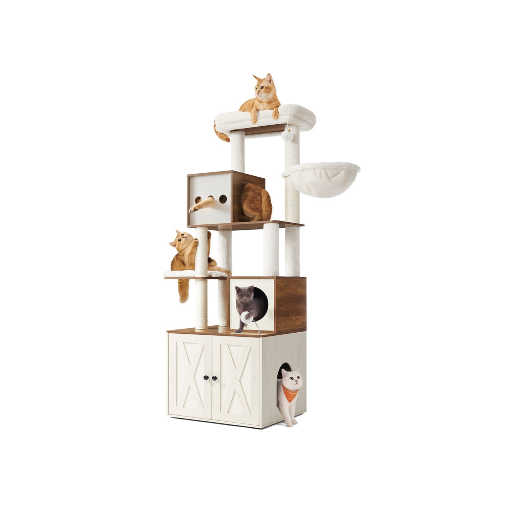 Feandrea Kratzbaum, Katzenbaum mit Katzenklo-Schrank