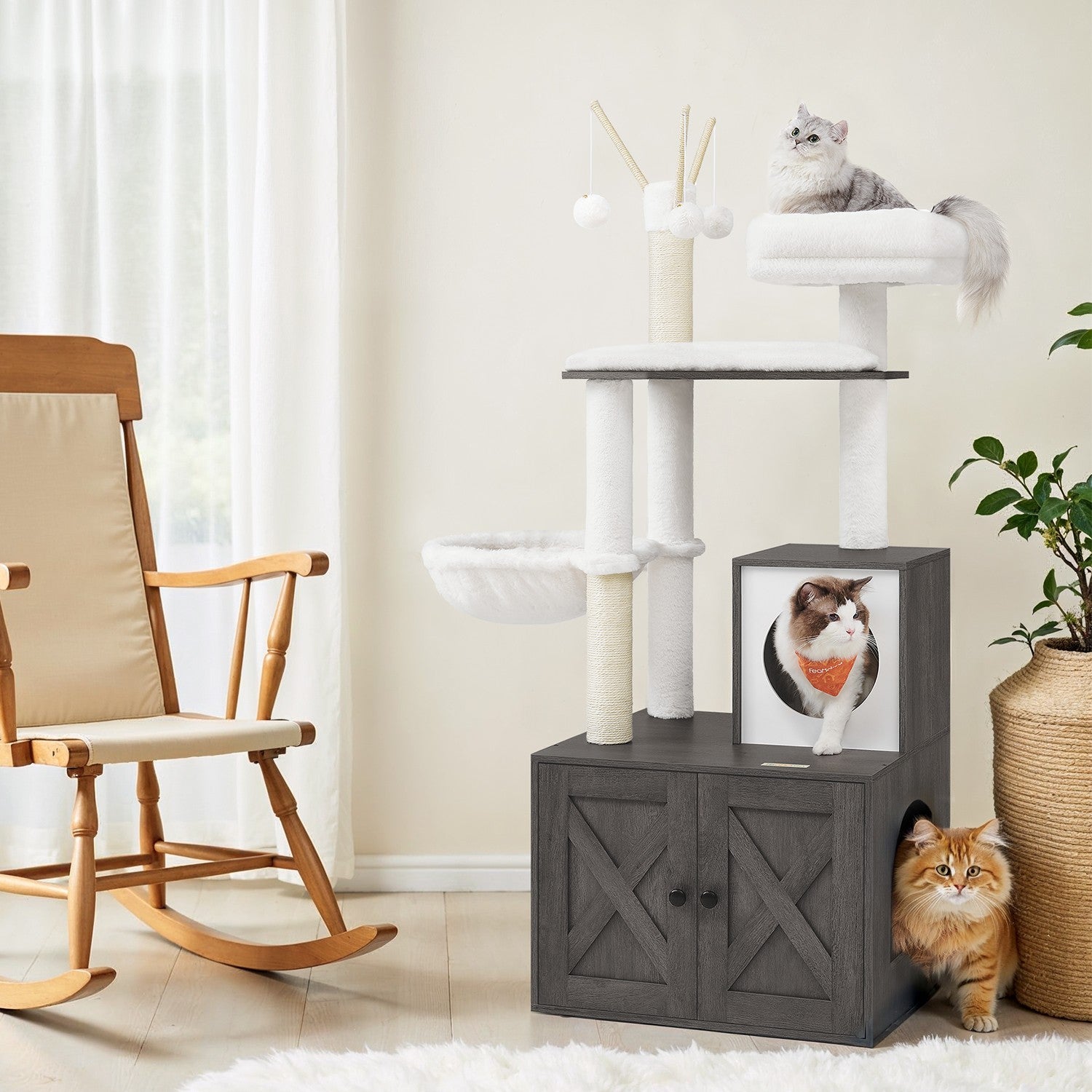 Feandrea Kratzbaum mit Katzenklo-Schrank