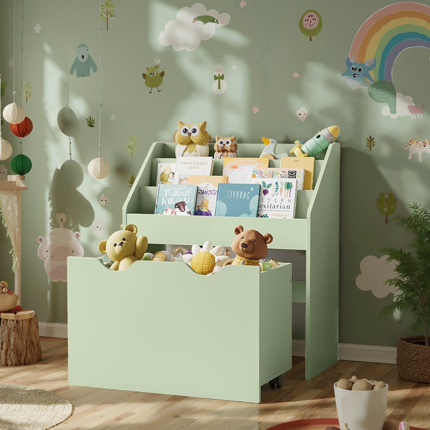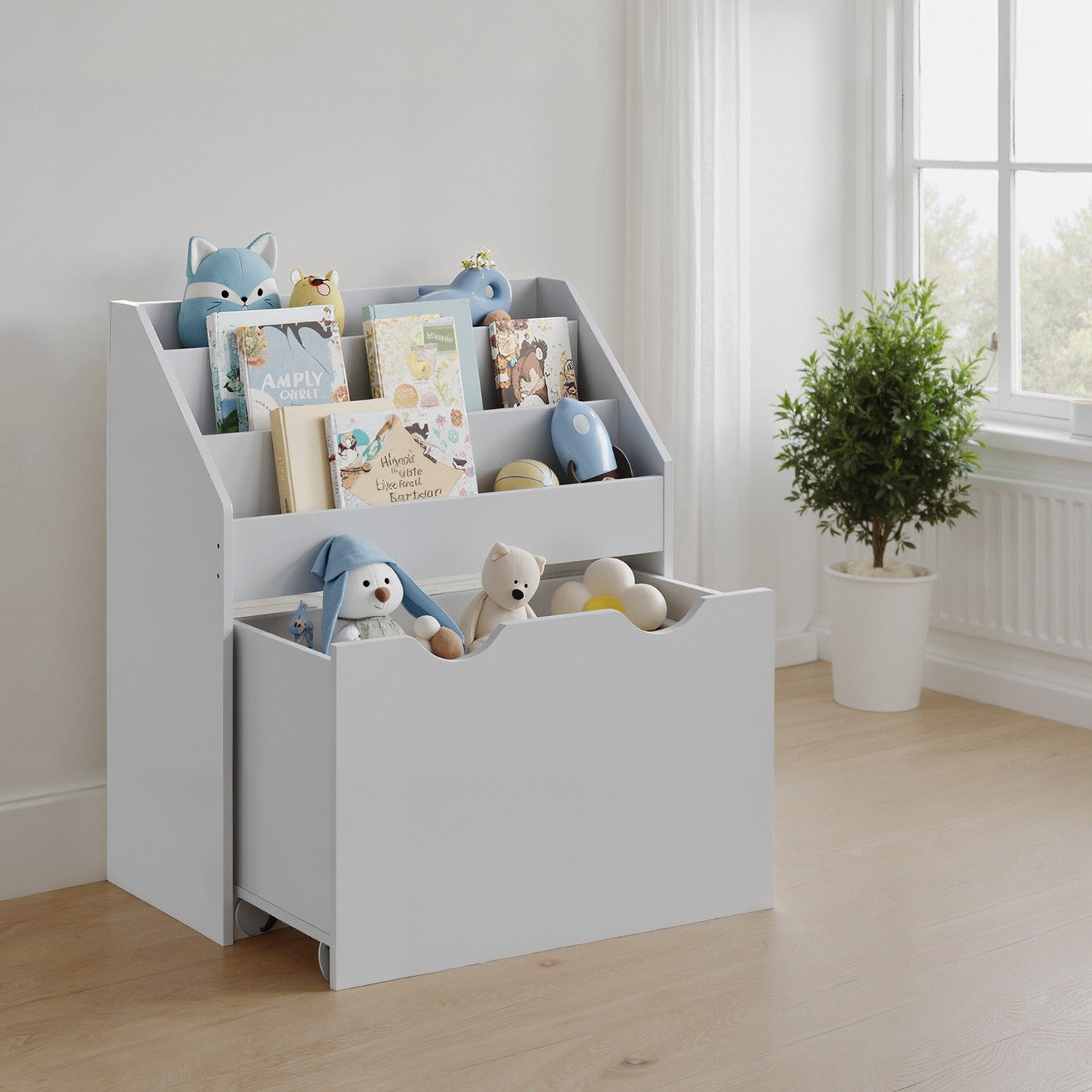 SONGMICS Spielzeugregal mit 3 Regalebenen auf Rollen wolkenweiß