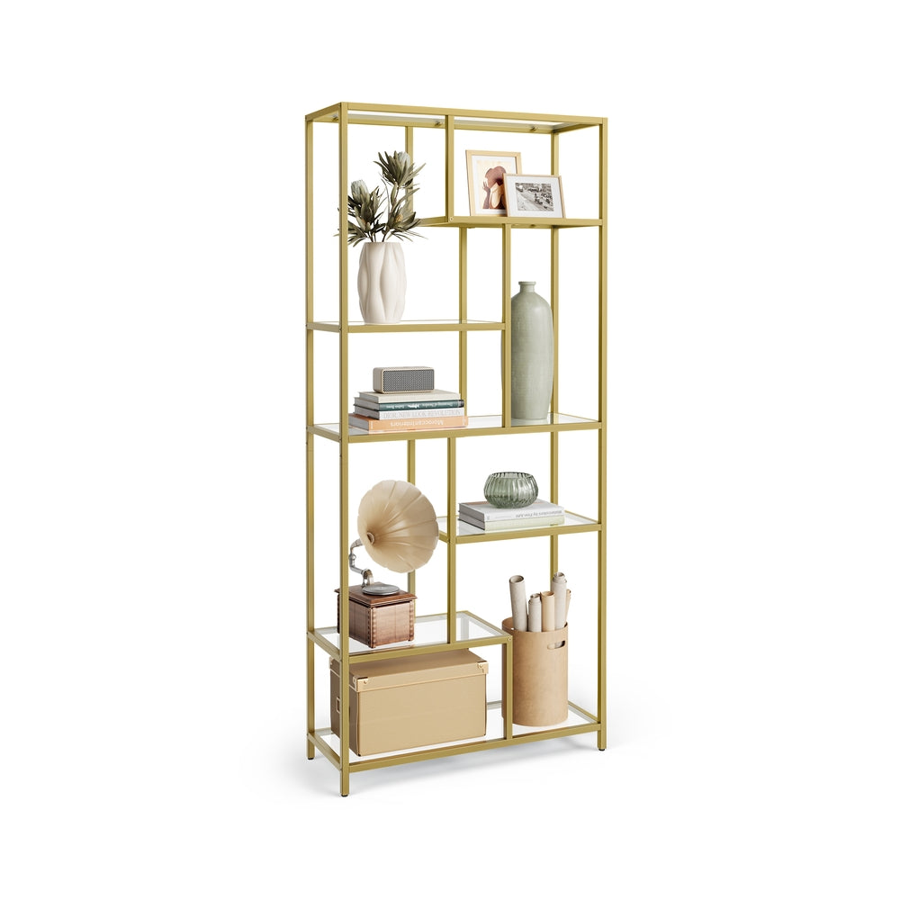 VASAGLE Bücherregal mit 6 Ablagen gold-transparent