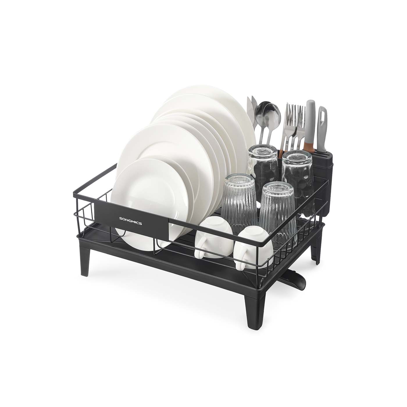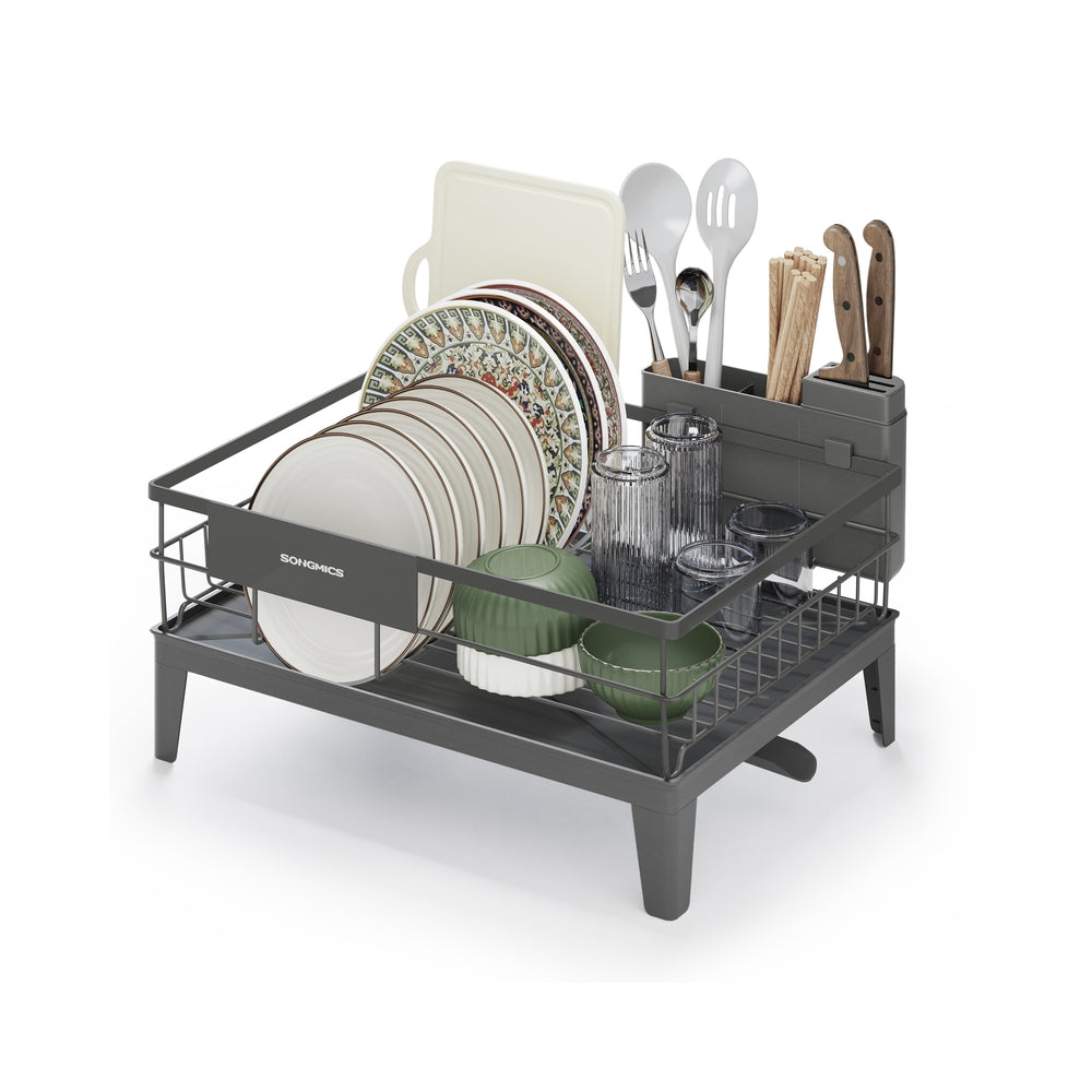 SONGMICS Drehbares Abtropfgestell mit Abtropfschale und Besteckablage