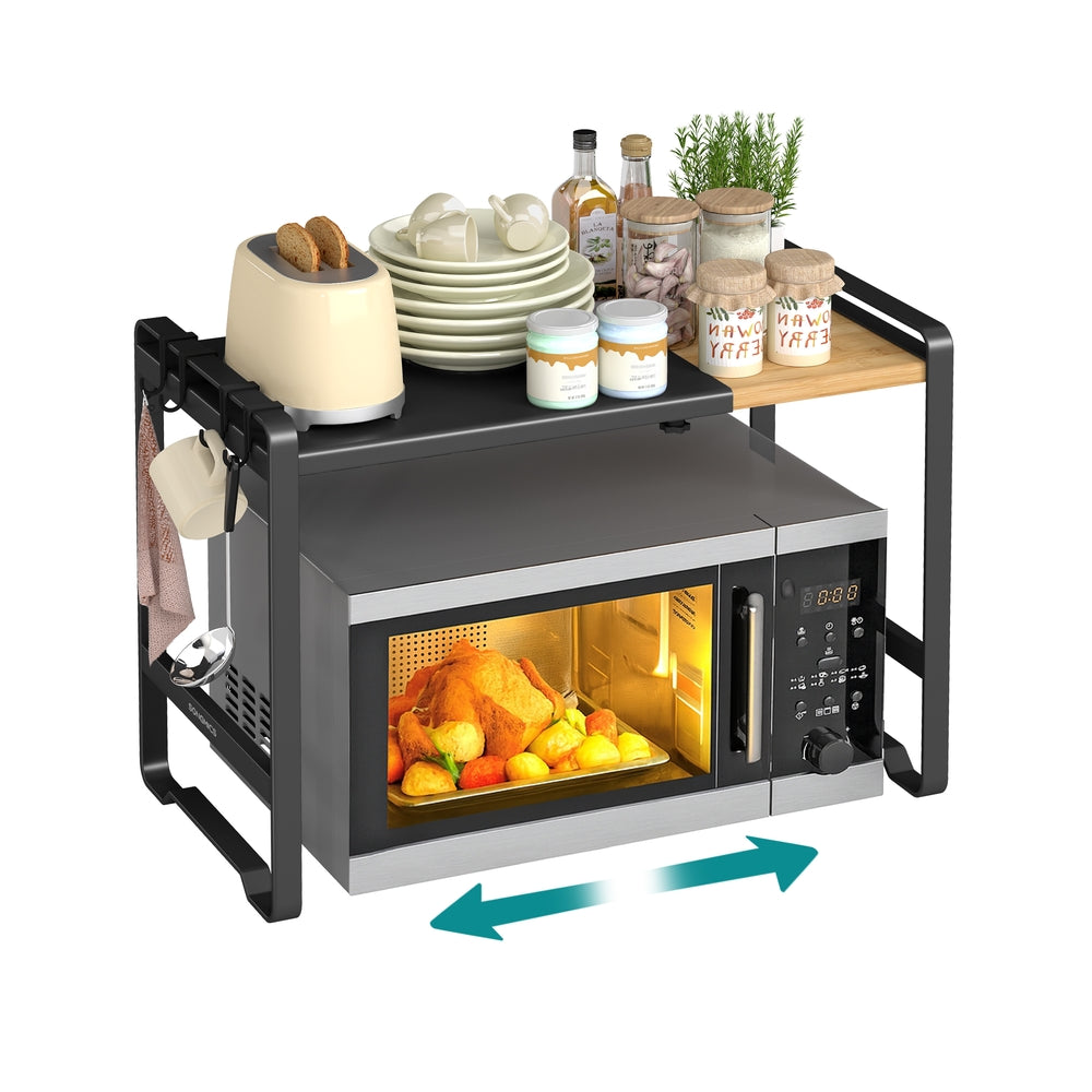 Erweiterbares Mikrowellen Regal mit 4 Haken tintenschwarz-naturbeige