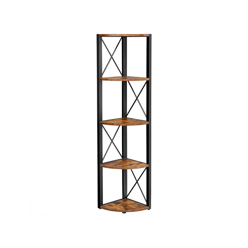 Eckregal mit 5 Ebenen einfache Montage vintagebraun-schwarz