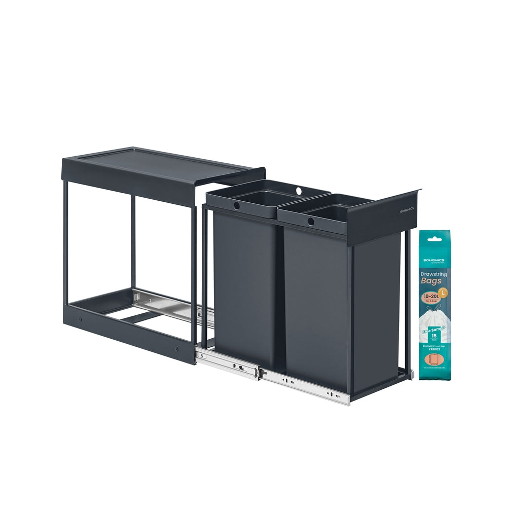 SONGMICS Mülleimer mit zwei Fächern und ausziehbarem Mülltrennsystem