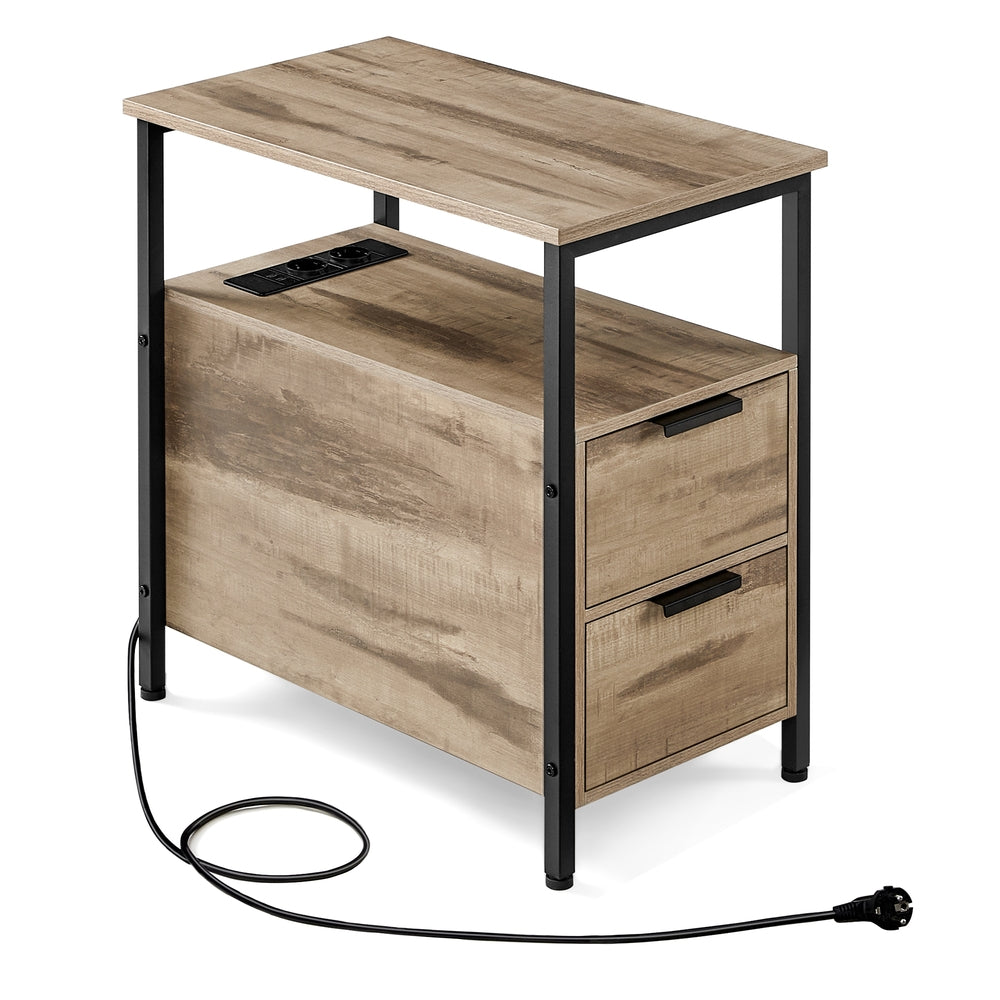 Beistelltisch, Nachttisch mit Steckdosenleiste, 2 Schubladen