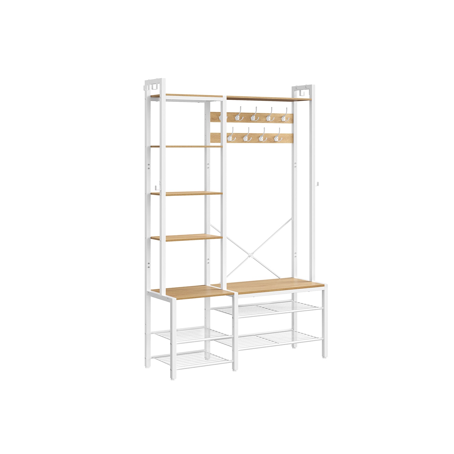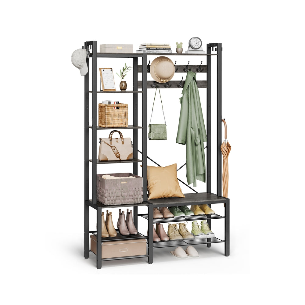 VASAGLE Garderobenständer mit Schuhbank aus Spanplatten vintagebraun-tintenschwarz