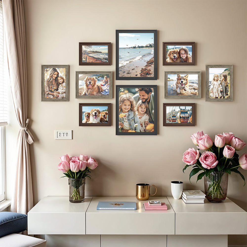 Bilderrahmen 10er Set mit 12 spurlosen Wandhaken