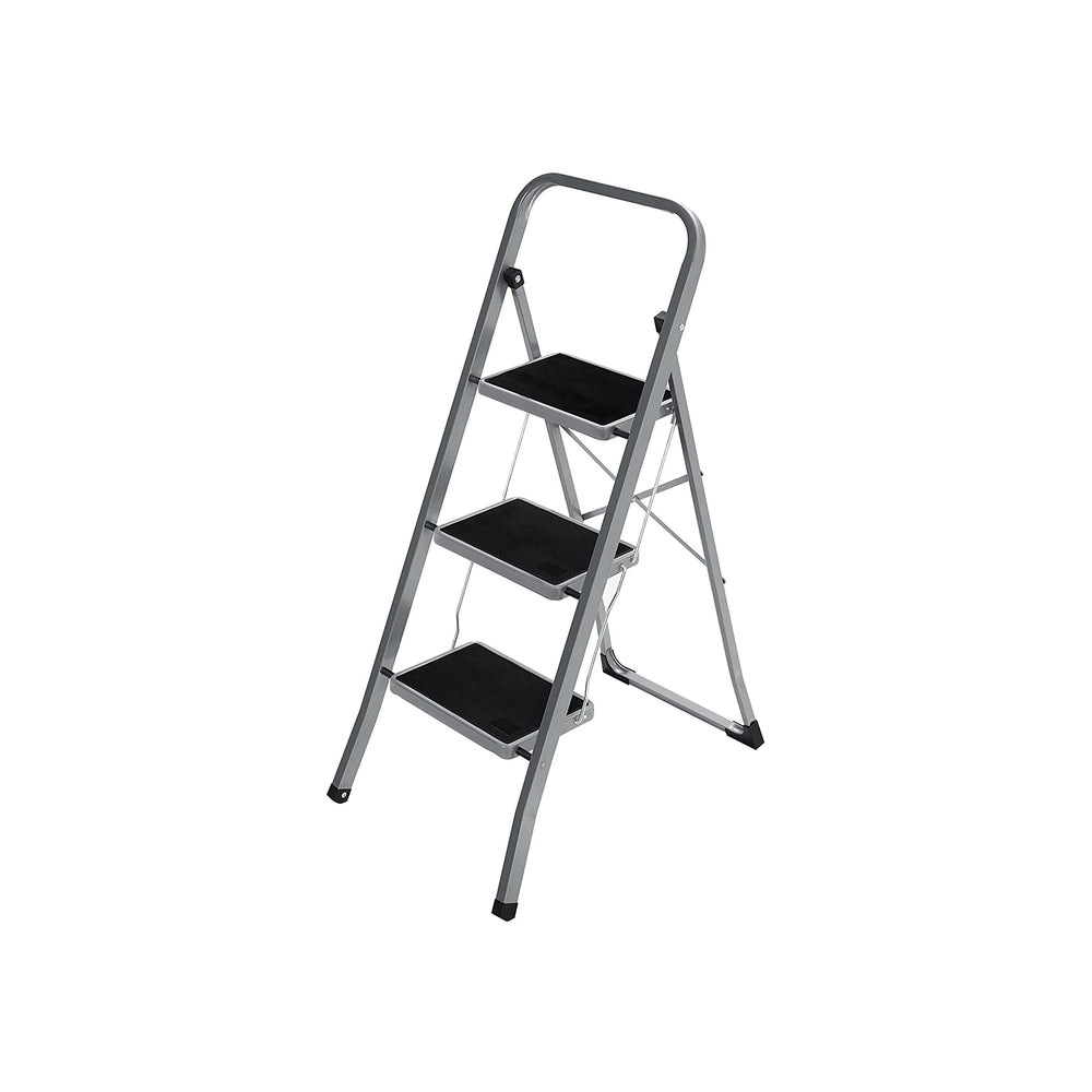 SONGMICS Trittleiter mit 3 Stufen Grau-Schwarz