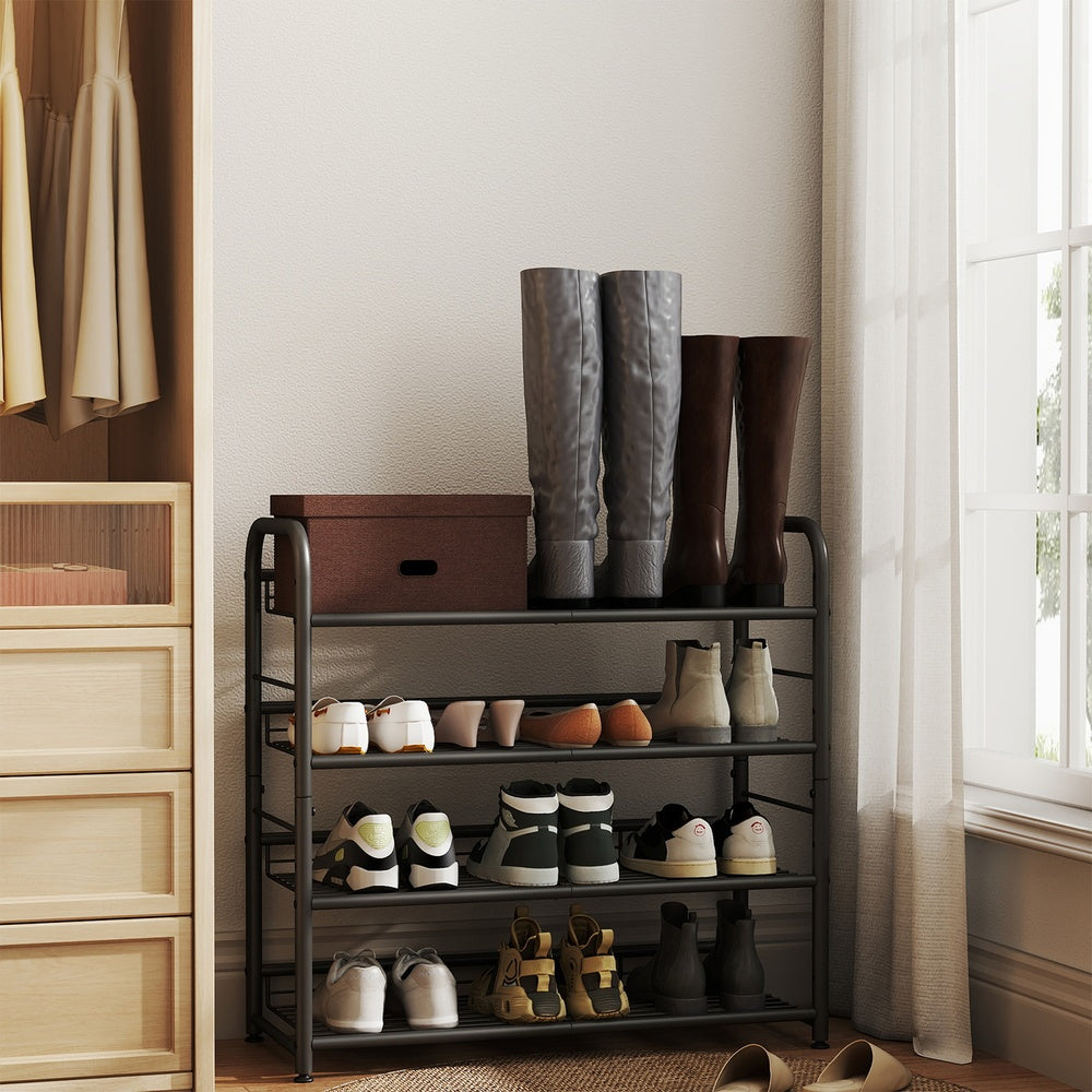 Schuhregal mit 4 Ablagen, stapelbarer Schuh-Organizer, für bis zu 16 Paar Schuhe