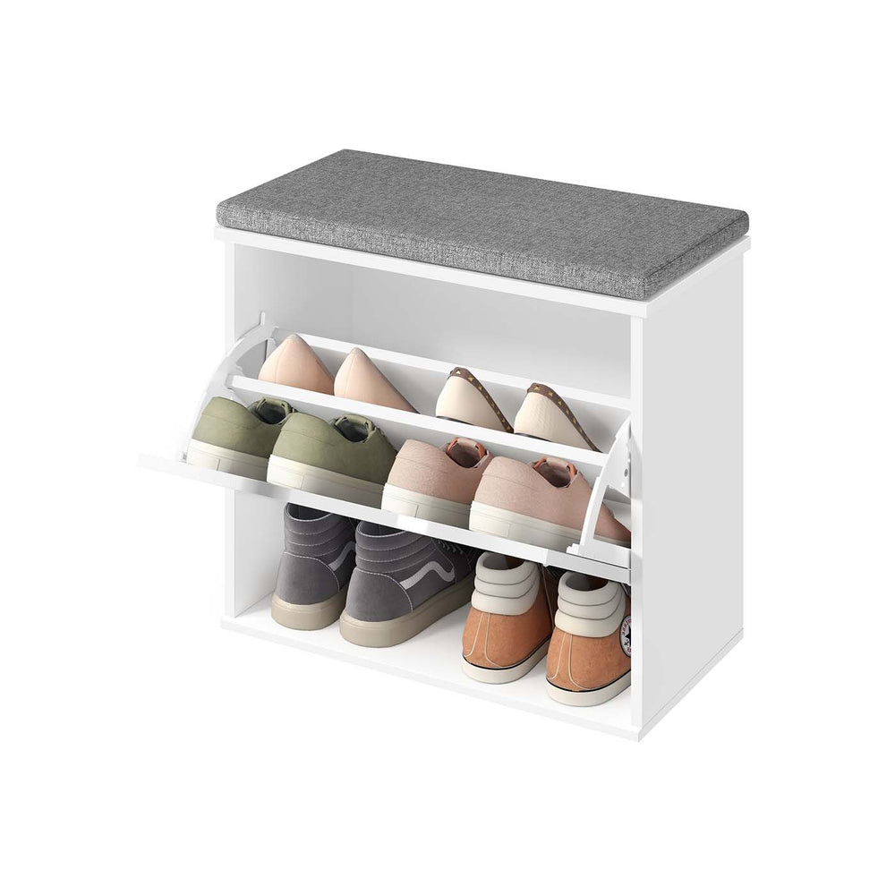 VASAGLE Schuhbank mit Sitzkissen Klappfach und verstellbarer Trennwand