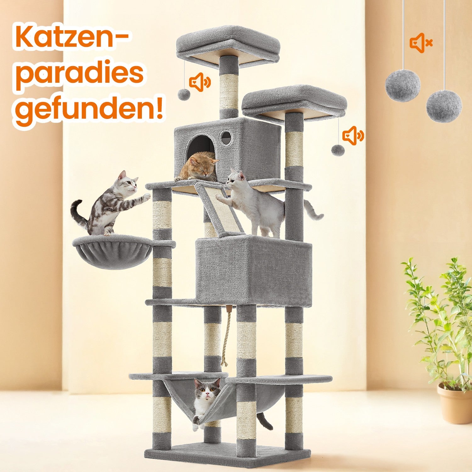 Feandrea 168 cm Kratzbaum mit 13 Kratzsäulen und 2 Plattformen