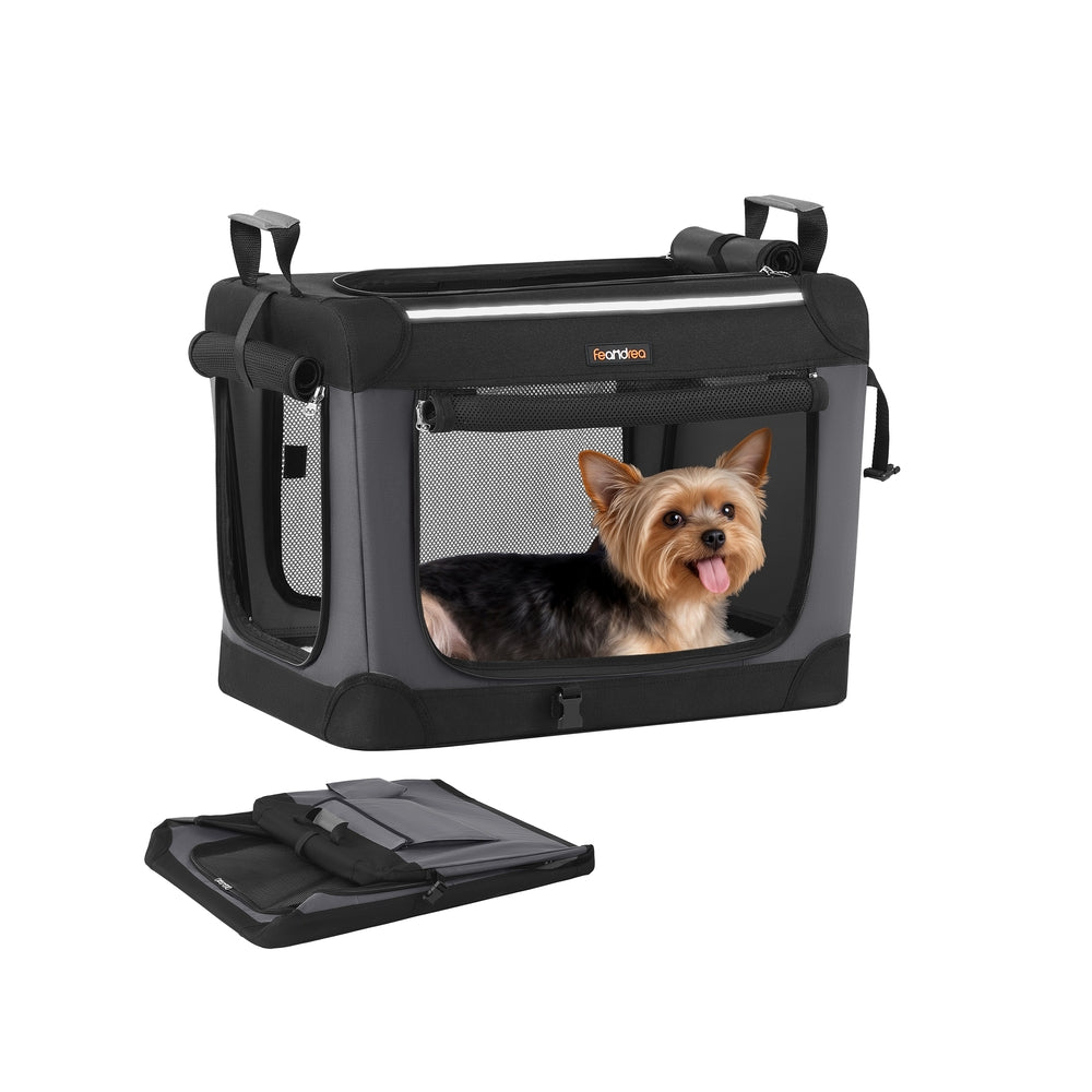 Faltbare Hundebox 60 cm mit 4 Türen aus Netzstoff tintenschwarz