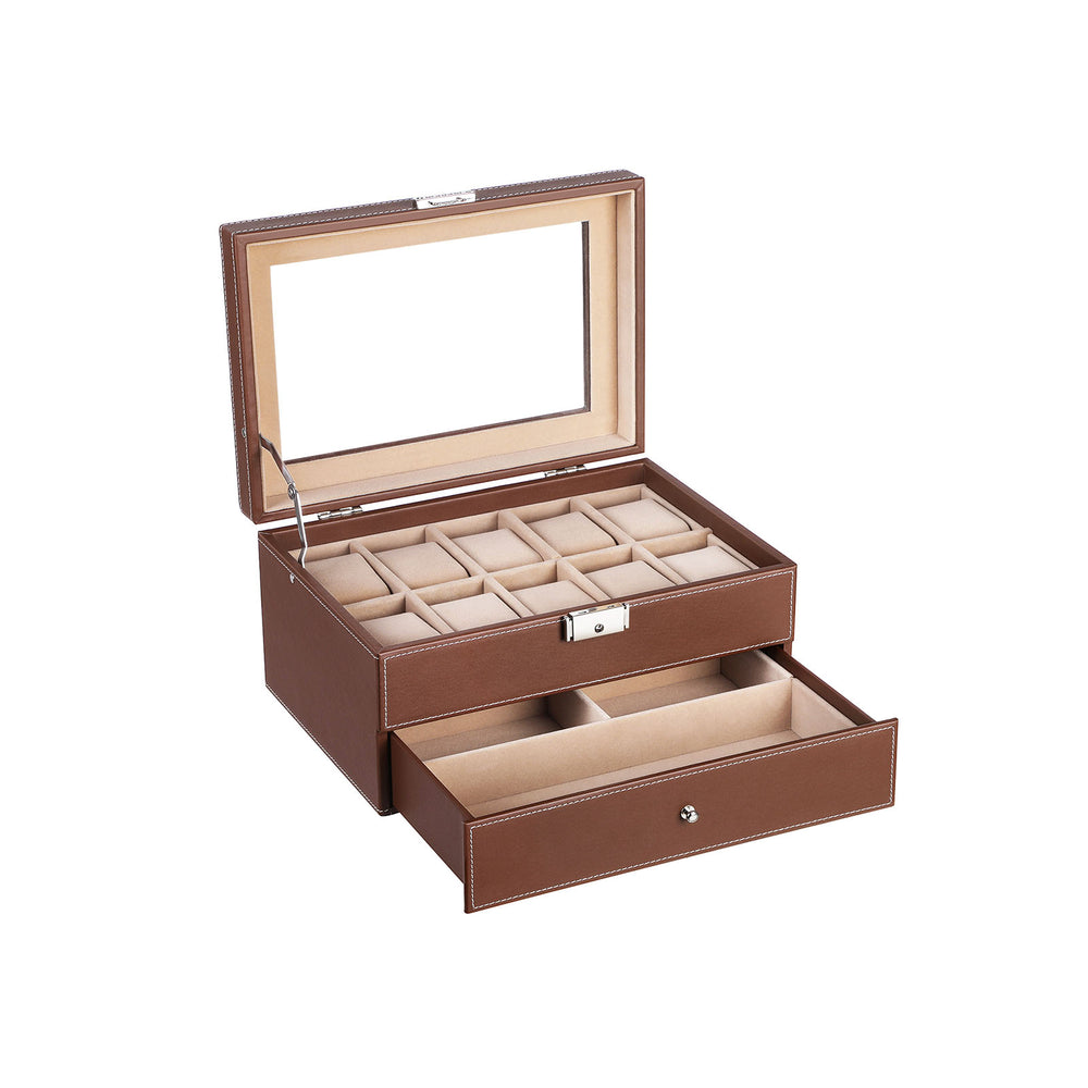 Uhrenbox für 10 Uhren mit Schmuckfach
