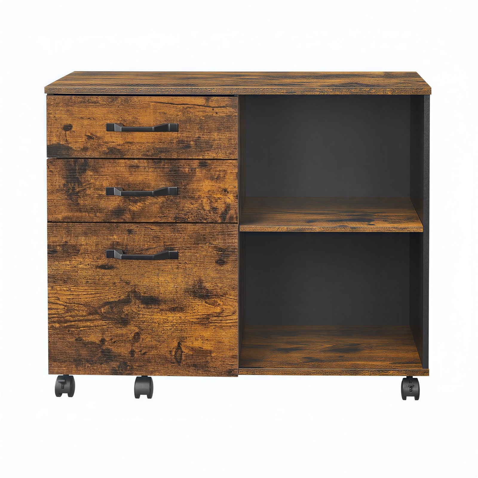 Mobiler Aktenschrank, Aufbewahrungsschrank mit 3 Schubladen und Fächern, im Industriestil