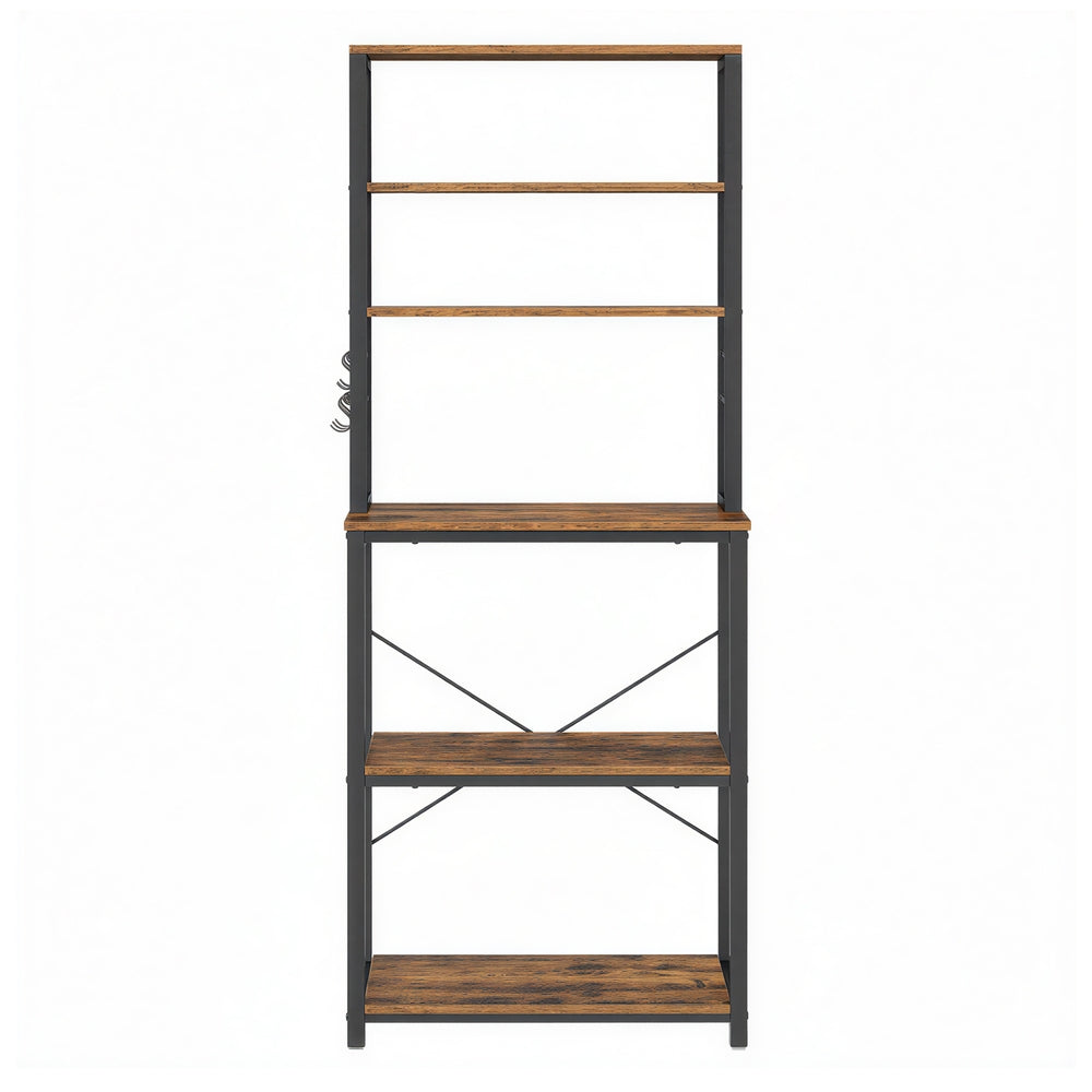 Küchenregal stehend, Standregal für Mikrowellen, 6 Regalebenen und 6 Haken