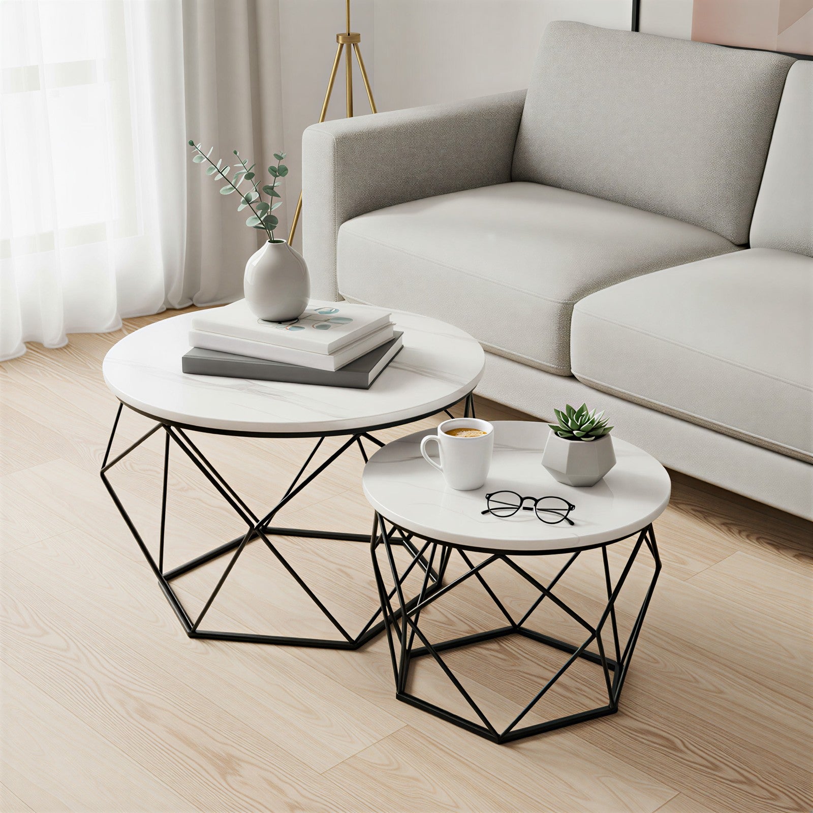 Couchtisch 2er Set, Wohnzimmertisch rund, Beistelltisch modern