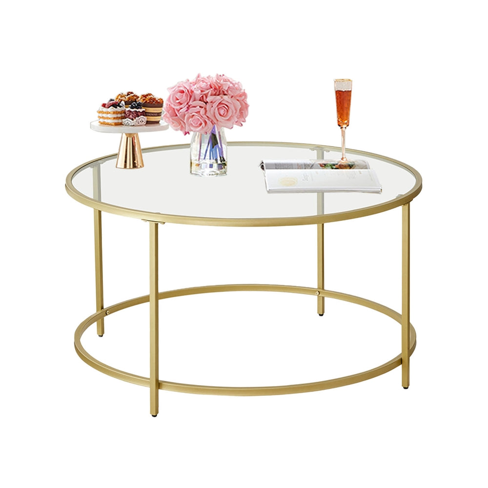 VASAGLE Runder Couchtisch mit Glasoberfläche