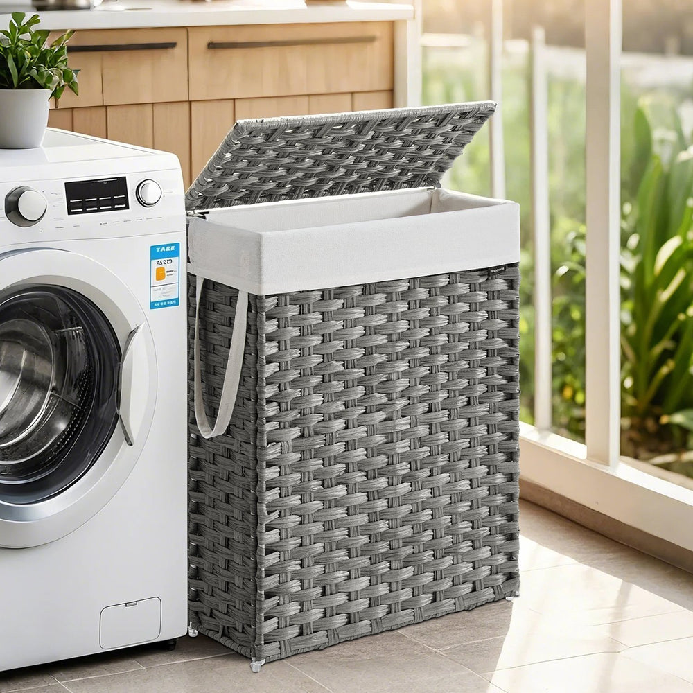 Wäschekorb schmal, Wäschesammler 55 L, mit Deckel und Griffen