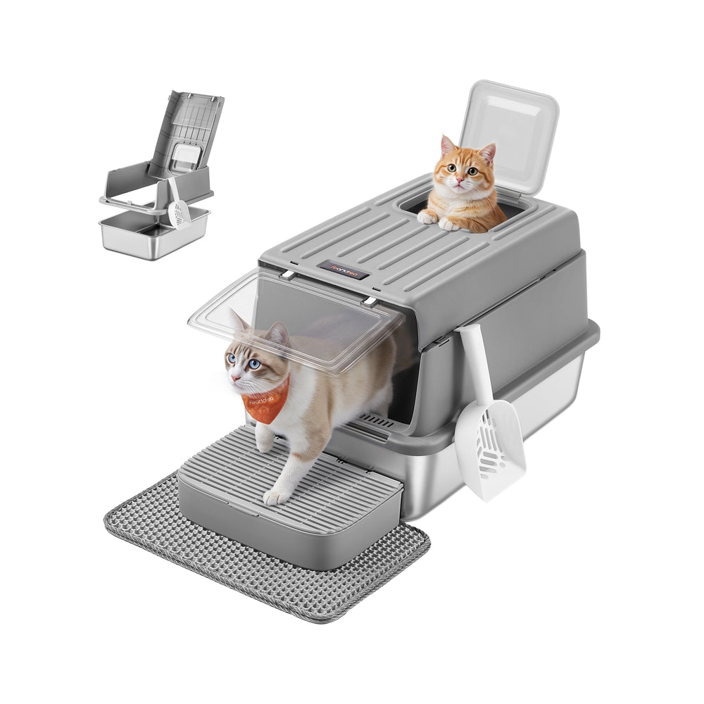 Feandrea Katzentoilette aus Edelstahl mit Deckel und Zubehör
