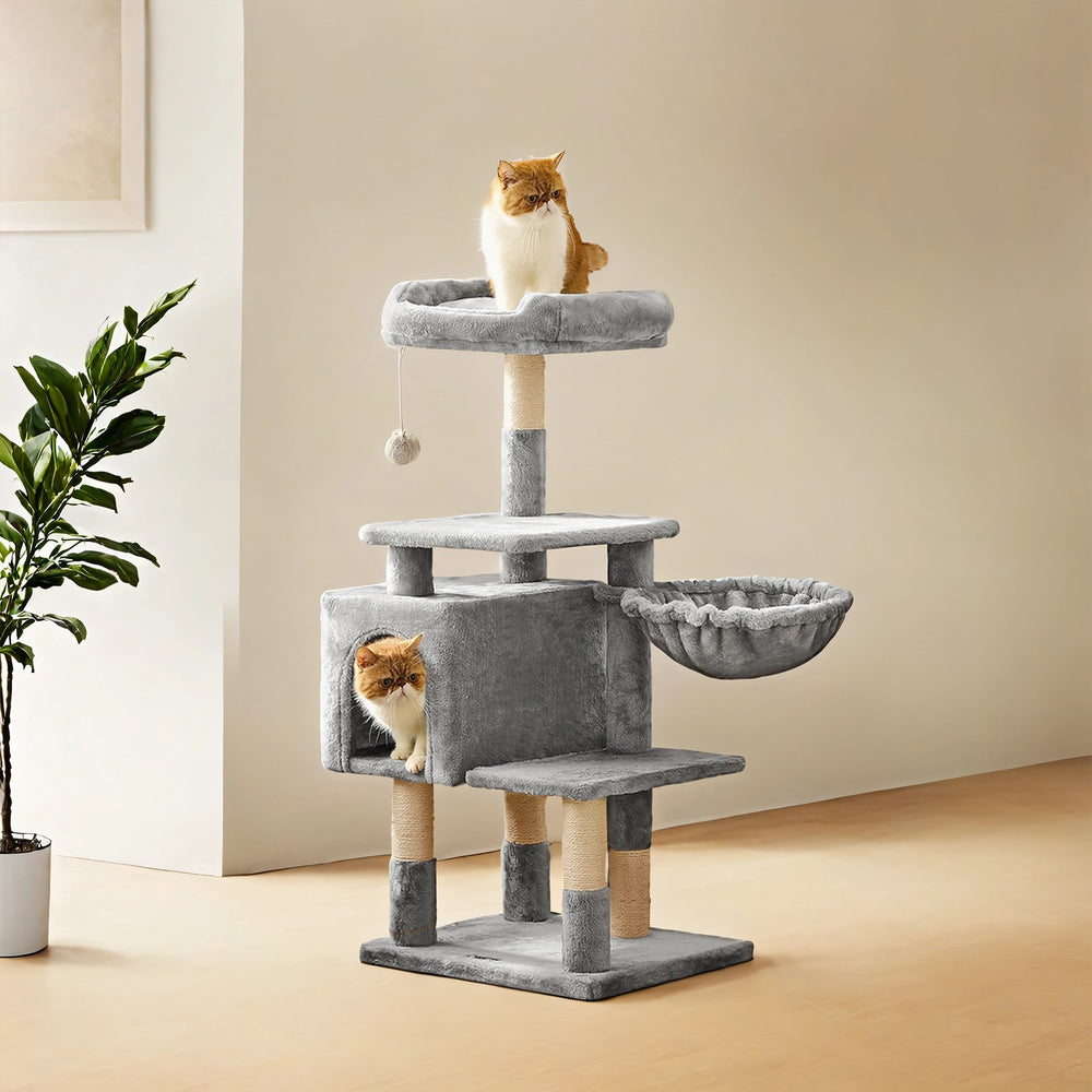 Kratzbaum, 110 cm großer Katzenbaum, hellgrau